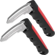 Razor-sharp 420 SS blade slices jammed belts in one pull; a safety guard prevents accidental cuts.