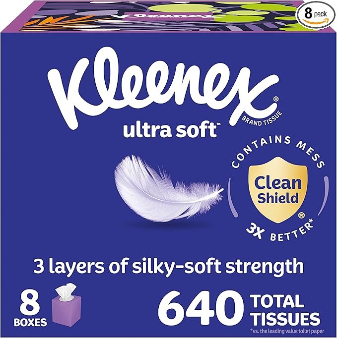 Be the first to review “Kleenex Ultra Soft Facial Tissues, 8 Cube Boxes, 80 Tissues per Box, 3-Ply, Packaging May Vary” Cancel reply